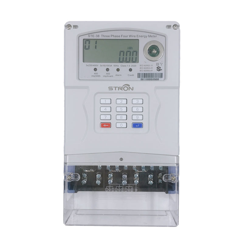 STE38-A เป็นมาตรฐาน STS Standard ประเภทปุ่มกดวาล์วควบคุมอัตโนมัติมิเตอร์ไฟฟ้าสามเฟสแบบเติมเงินสามารถเติมเงินด้วยซอฟต์แวร์จำหน่าย Stronpay โดยตรงและสื่อสารกับระบบ AMI ผ่านโมดูล LORA-RF หรือ PLC